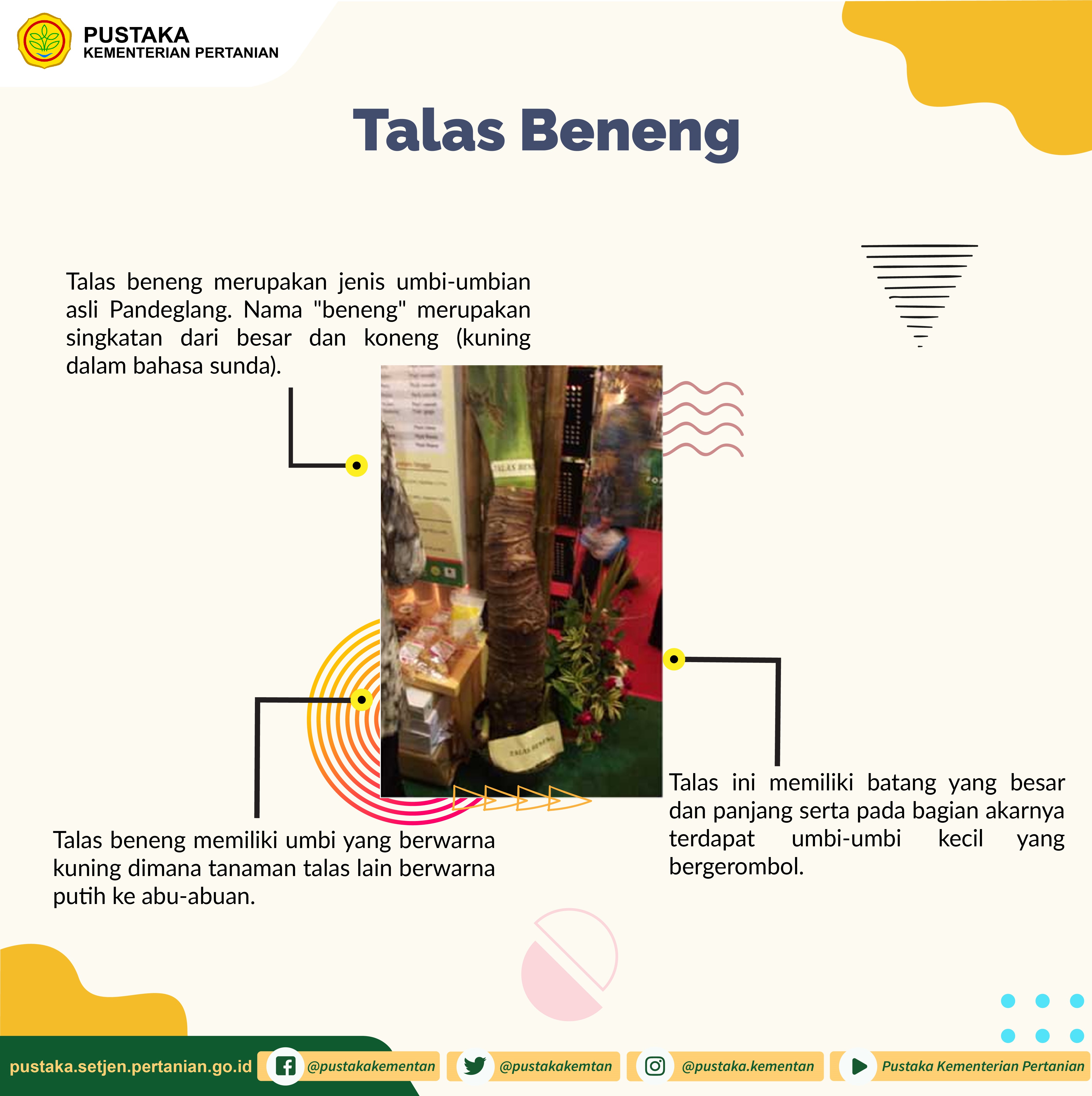 | dc.description | Talas beneng merupakan jenis umbi-umbian asli Pandeglang. Nama "beneng" merupakan singkatan dari besar dan koneng (kuning dalam bahasa sunda). | en_US |