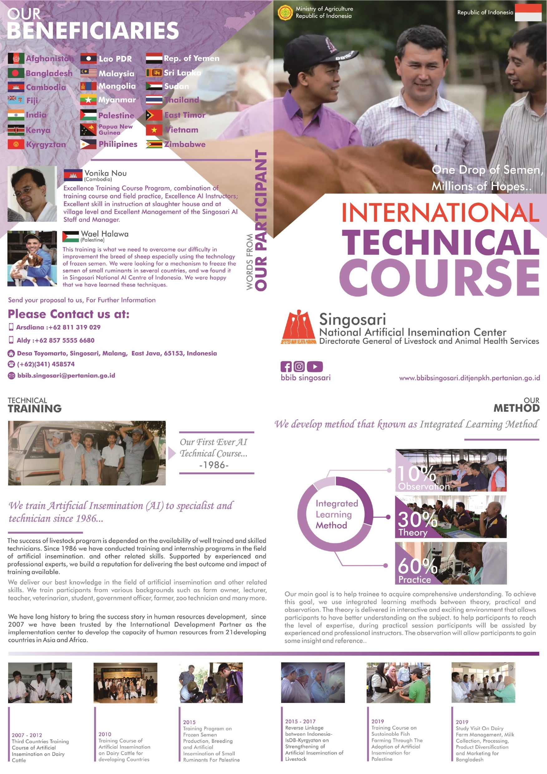 Bimbingan Teknis Internasional yang dilaksanakan di BBIB Singosari dan telah di ikuti oleh beberapa negara diantaranya Palestina, India, Vietnam, Kamboja dan lain-lain