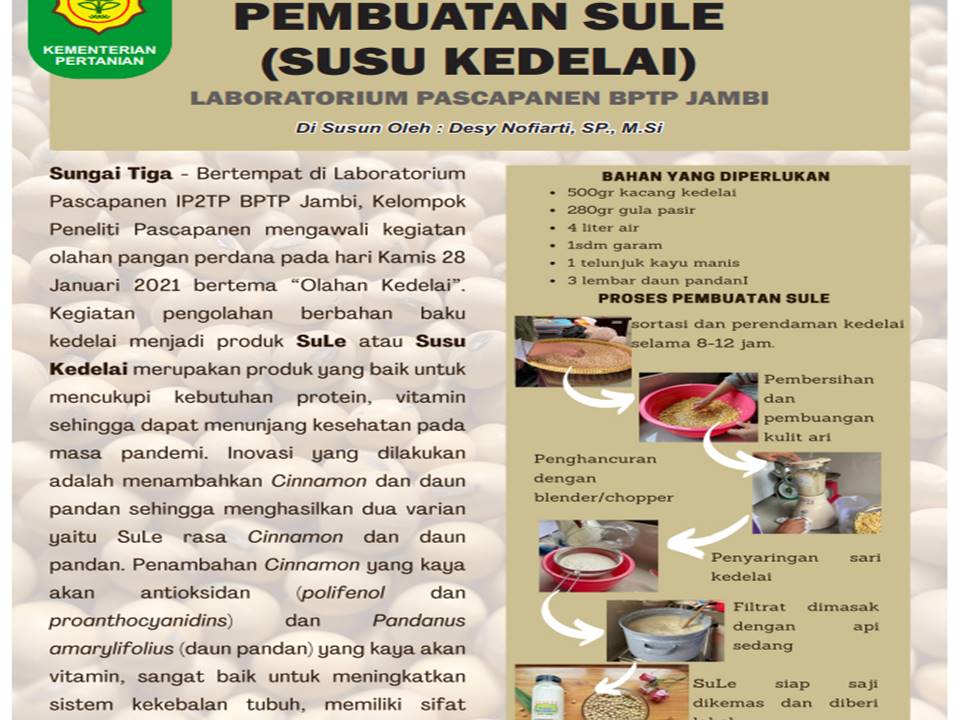 Susu Kedelai, SULE, Research Subject Categories::Q Food science/Ilmu Pangan::Q01 Food science and technology/Ilmu-ilmu dan teknologi makanan